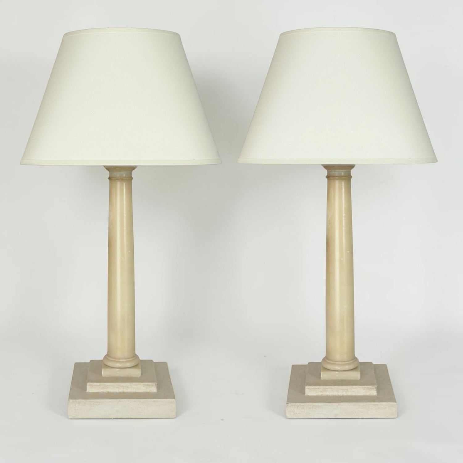 Pair of Beige Marble Column Lamps