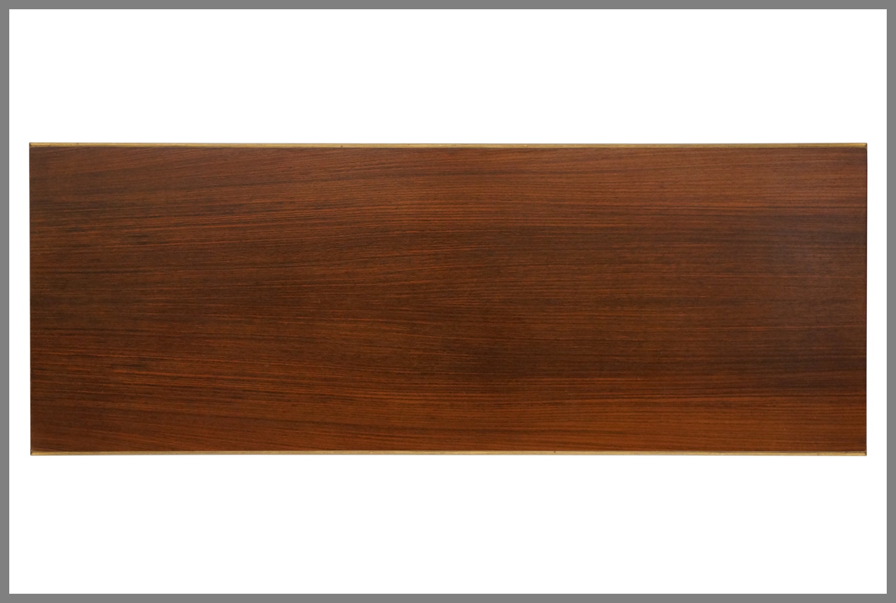 Rectangular rosewood Art Deco console table with V form shaped supports ending in curved bronze feet