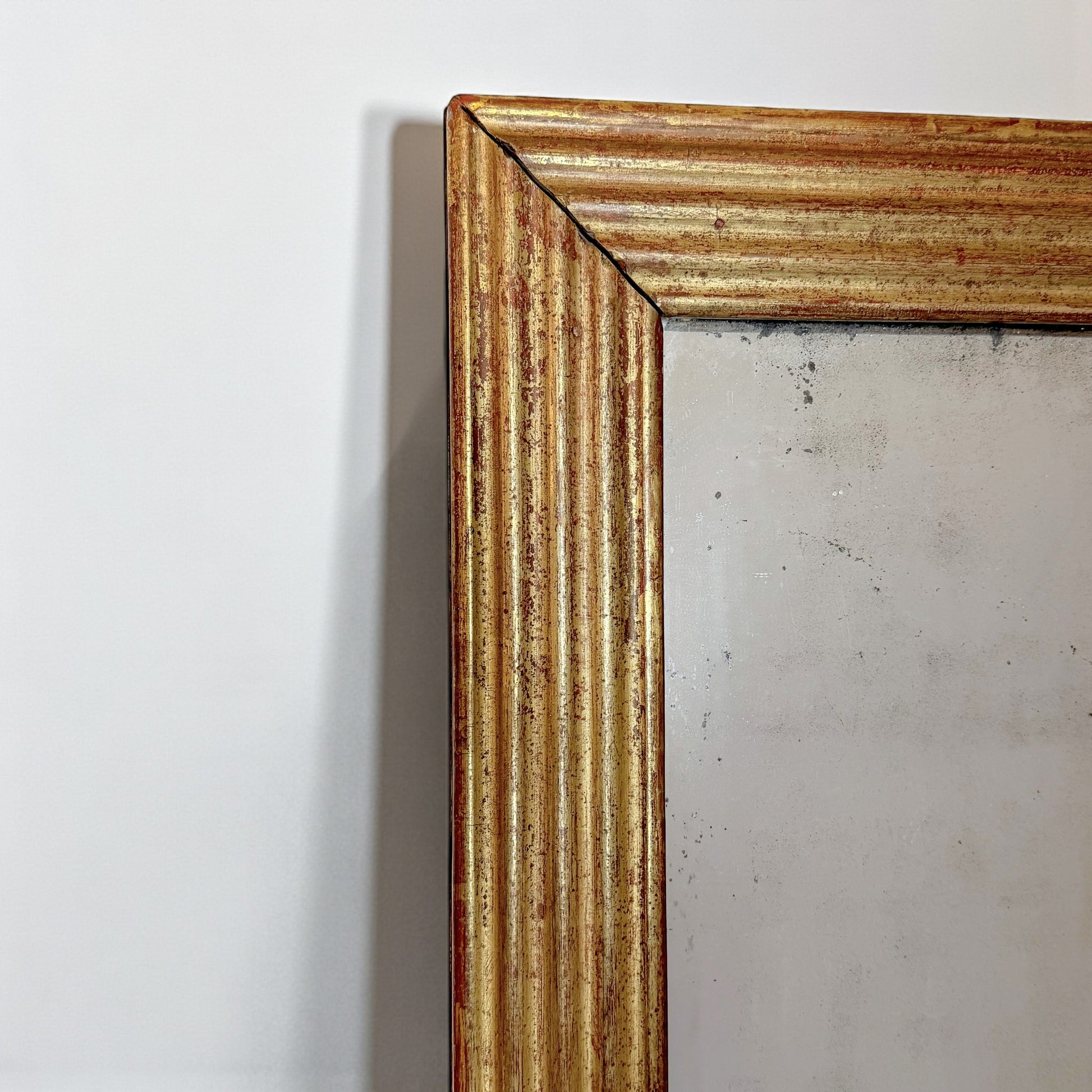 French 18th Century “Baguette” mirror with a ribbed, gilded wood frame and original mercury glass mirror plate