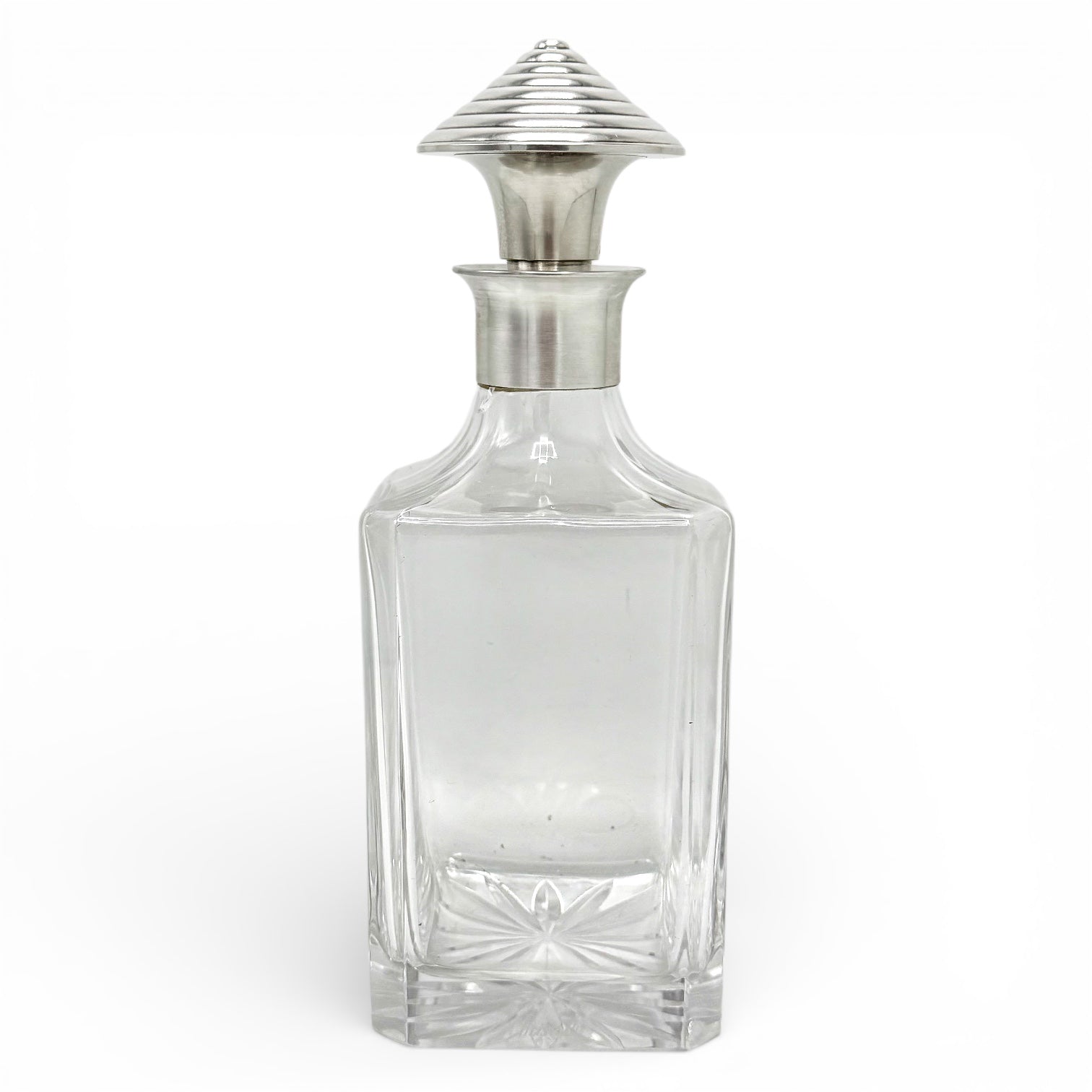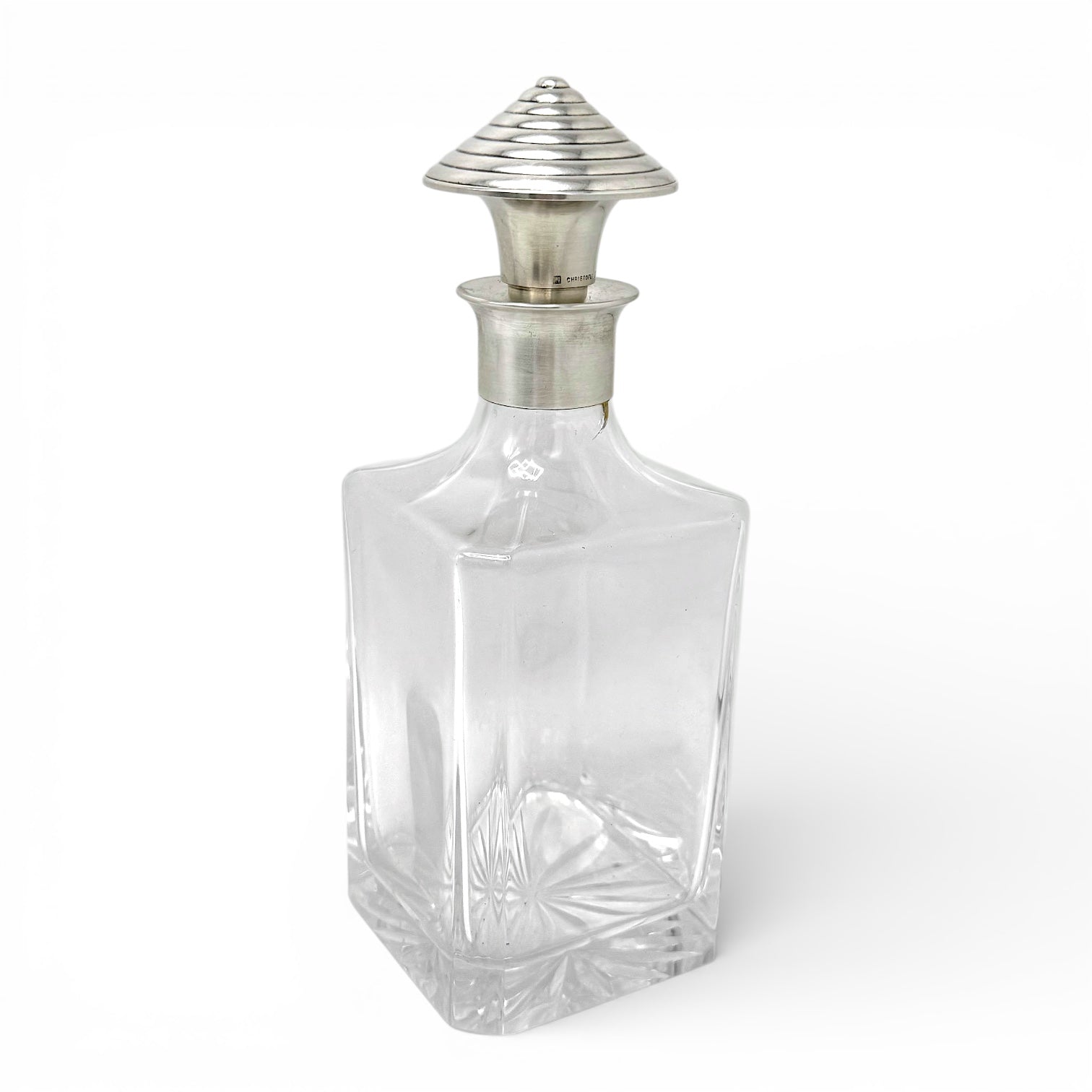 Vintage Christofle square crystal decanter with silver-plated stopper, signed