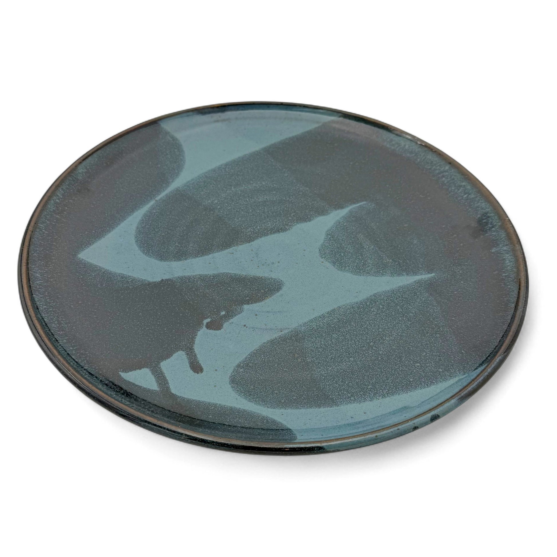 handmade abstract blue/green stoneware plate, signed.