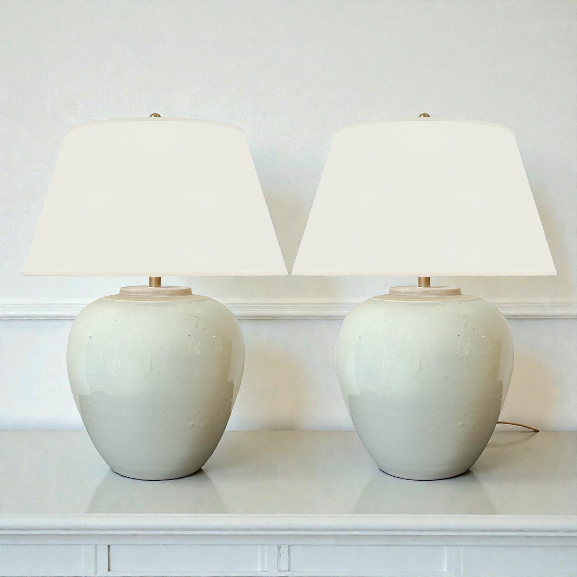 Pair of round celadon stoneware table lamps