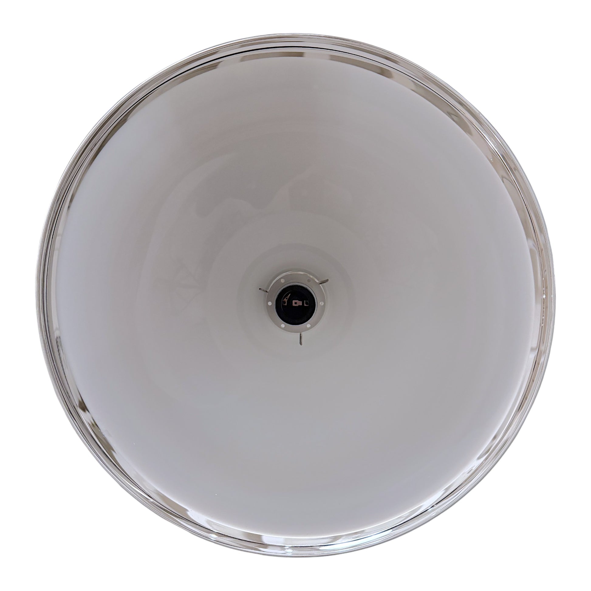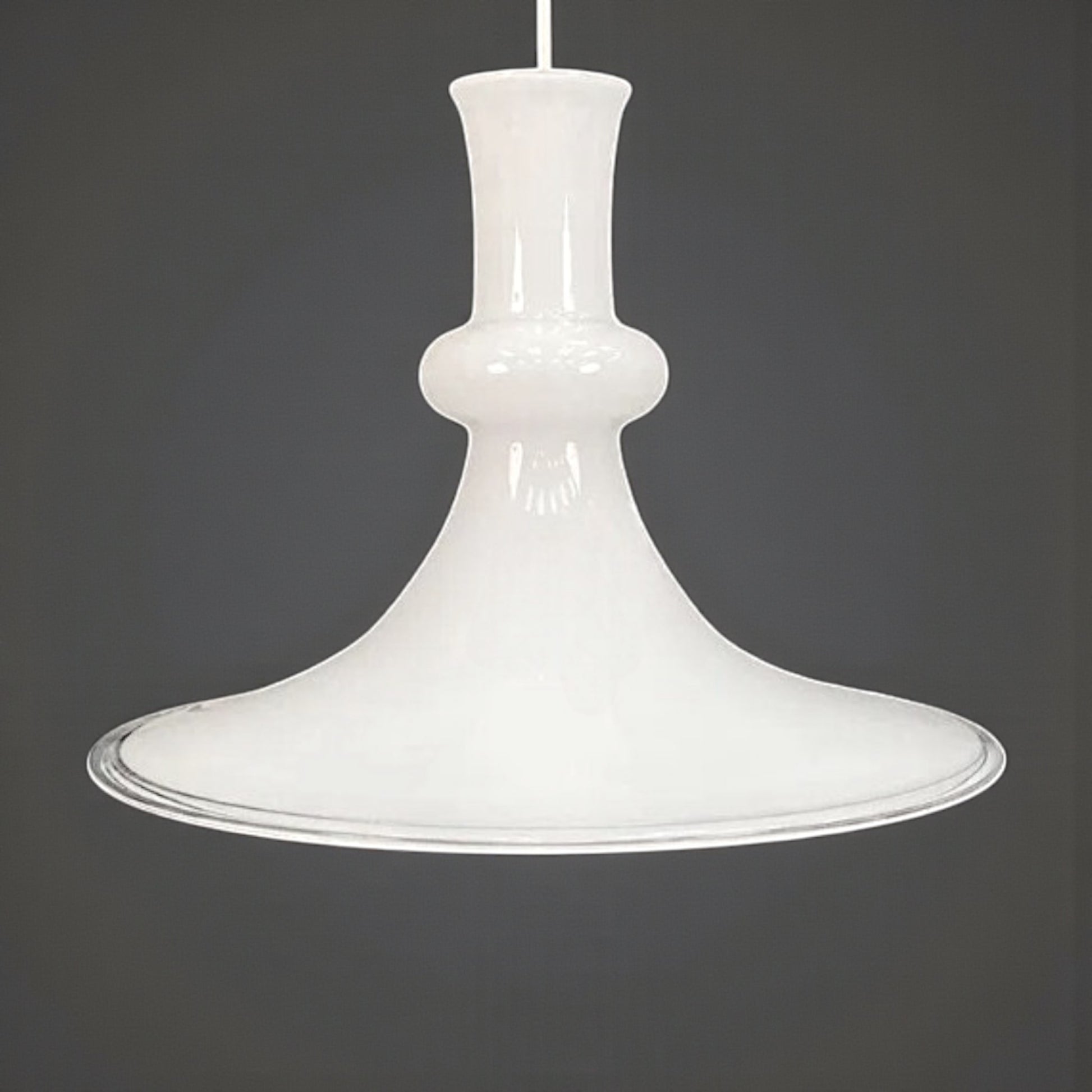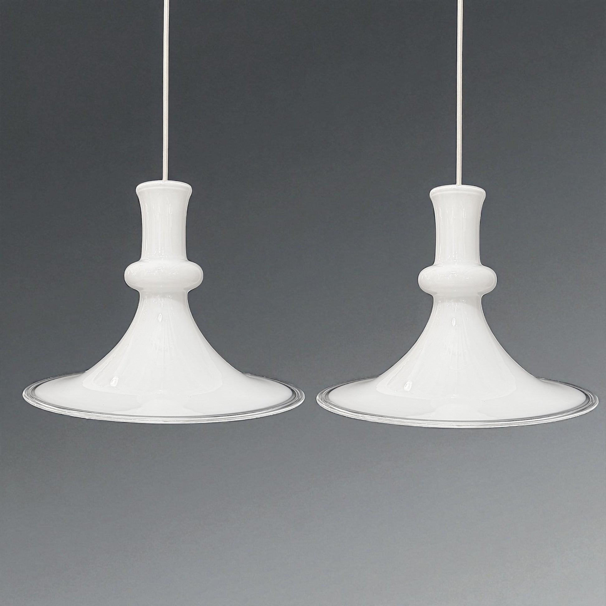Pair of white Holmegaard Etude pendant lights with clear glass rims by Michael Bang